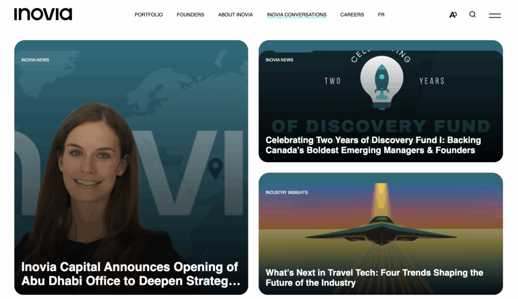 The new site functions as a sophisticated fund introduction tool—clearly articulating investment thesis, showcasing portfolio success, and positioning the team’s expertise in ways that resonate with both prospective LPs and ambitious founders. Every element works together to reinforce Inovia’s position as a leading Canadian venture capital fund.